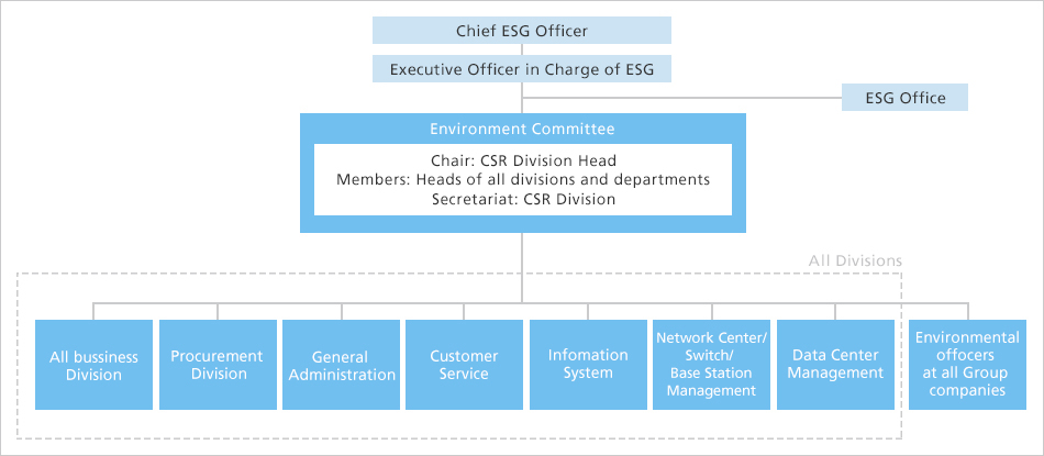 SoftBank considers global environmental problems to be important management issues and has established environmental action guidelines and built an environmental management system and management structure to promote efforts by all executives and employees to reduce our environmental impact.