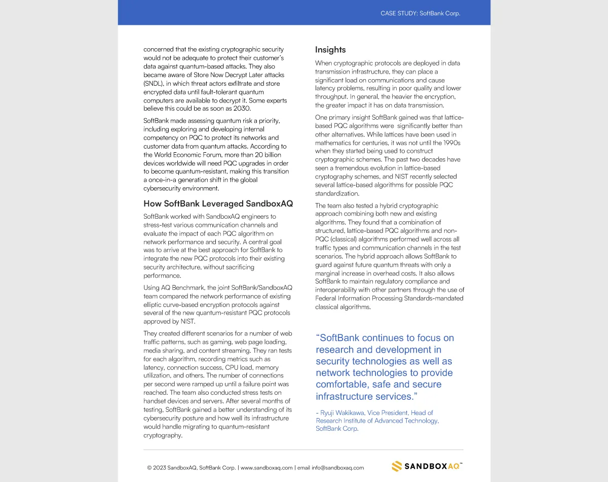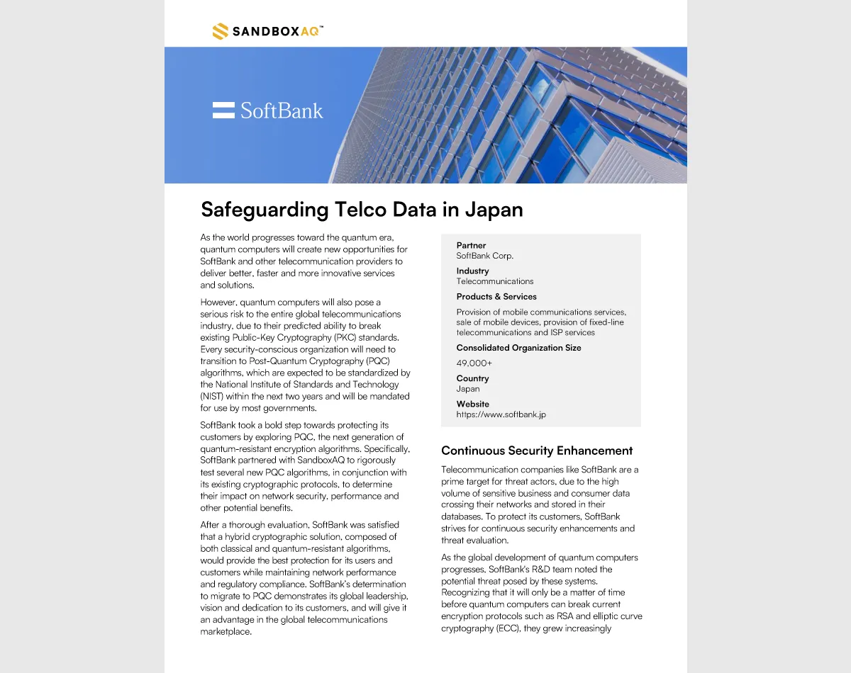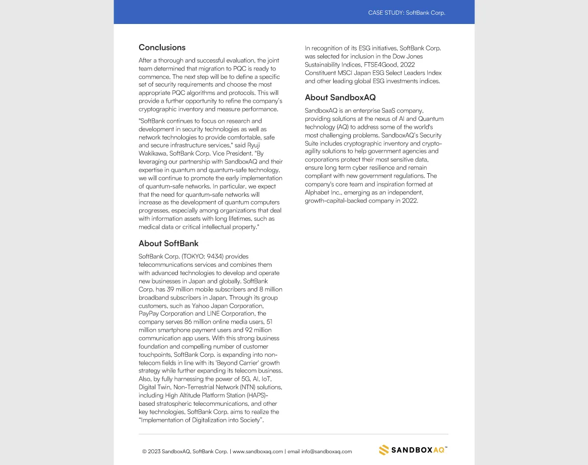 In relation to the press release titled “SoftBank Corp. and SandboxAQ Jointly Verify Hybrid Mode Quantum-safe Technology”, we have issued a joint case study with our partner, SandboxAQ.