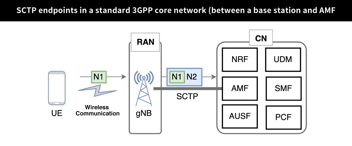 That being said, it is difficult to change the implementation of base stations that have already been widely deployed. In this research, the “N1N2 GW (gateway)”, which removes SCTP association endpoints, is installed between the base station and the core network instead of the AMF.