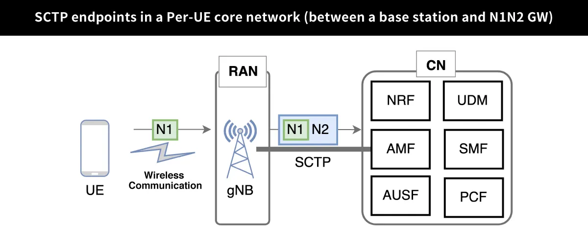 The N1N2 GW establishes SCTP association with the base station and has the function of relaying signals between the user device and the base station, as well as the core network. As a result, by installing the N1N2 GW, the endpoints of SCTP association were removed from core network functions.