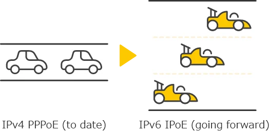 When subscribing to the SoftBank Hikari Giga Speed and Super High-speed plans. The maximum download speed with SoftBank Hikari High-speed plan (IPv6 IPoE+IPv4) is 1Gbps. 1Gbps is the maximum speed according to the technical standard. Actual speeds may decrease depending on the usage environment and network conditions, etc.