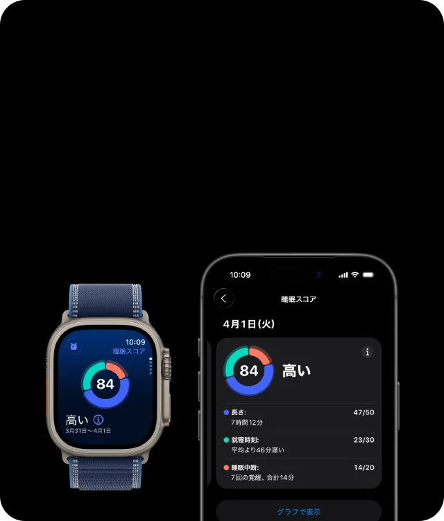 - Sleep Apnea Notifications: Sleep apnea notifications are available on Apple Watch Series 9 and later, Ultra 2 and later, and SE 3. The feature is intended to detect signs of moderate to severe sleep apnea for people 18 years old or older without a diagnosis of sleep apnea. Sales Name : Appleの睡眠時無呼吸の兆候の通知プログラム。 Name of distributor, etc. of controlled medical devices : Apple Japan, Inc. (Roppongi Hills, 6-10-1, Roppongi, Minato-ku, Tokyo, 0120-277-535)
