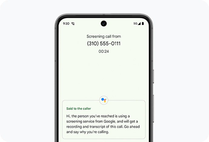 2 Based on internal benchmarking data. Feature available only in English in the US. See g.co/pixel/callassist for details.