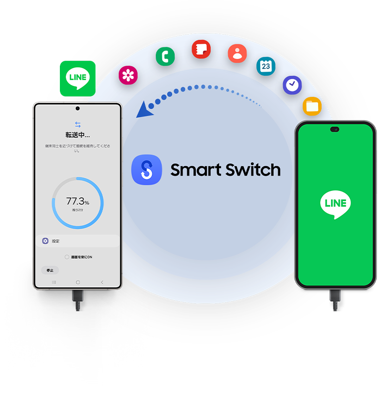 - *Some LINE data may not be transferable from iOS to Galaxy. LINE chat history transfer from iOS to Galaxy is only possible via wired connection.