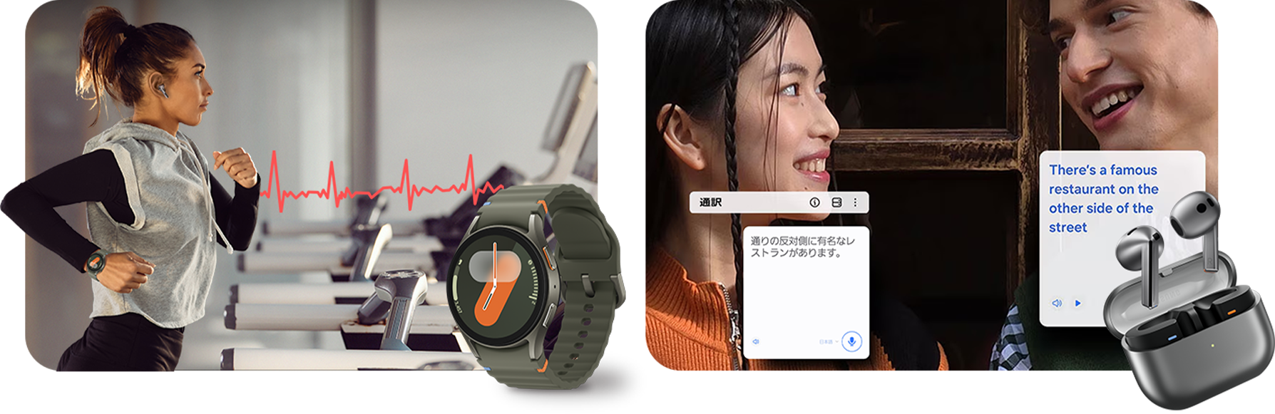 With separately sold Galaxy Buds3 Pro or Galaxy Buds3,*10 you can seamlessly use the