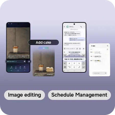 - *1Photo Assist requires a network connection and a login to a Samsung account. When editing with Photo Assist, the image will be resized. To indicate that an image was generated by AI, a watermark is overlaid on the output image upon saving. Although measures are in place to prevent the duplication of patented brands and character content, avoidance of duplication is not guaranteed. The accuracy and reliability of the generated output images are not guaranteed.