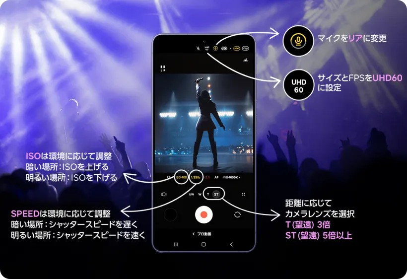 for clear shooting without overexposure even in concert venues