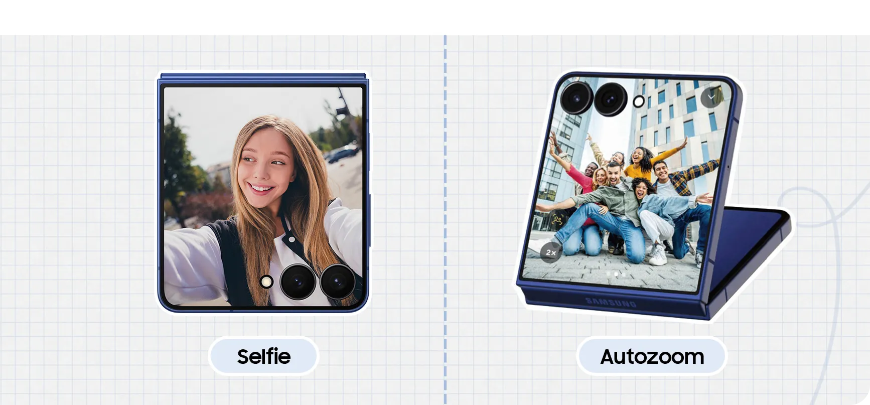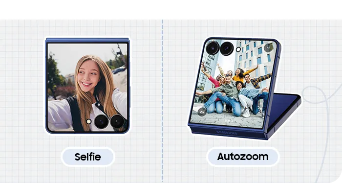Taking selfies with the outer camera is the characteristic of the Flip. With AI that