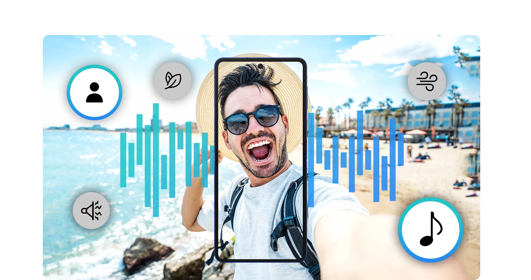 Results may vary depending on the video and the audio output method within the video. Samsung account login required. It can detect six types of sounds: voice, music, wind, nature, crowds, and noise. Actual audio detection may vary depending on the audio source and video conditions. We do not guarantee the accuracy of the results.