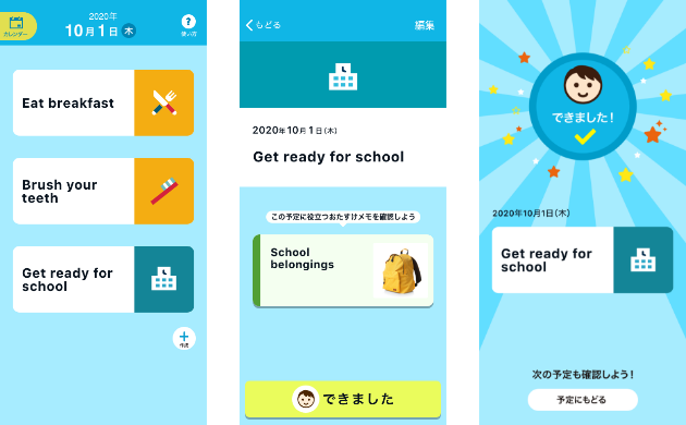 This application supports children in taking actions by their own and demonstrating their true potential by visualizing what to do and how to do it.
