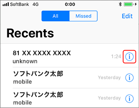 Tap "i" on the right side of the incoming calls history screen