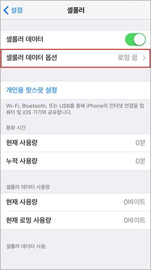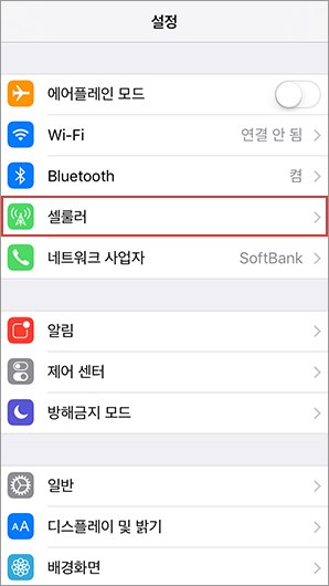 「셀룰러」→「셀룰러 데이터 옵션」을 눌러 「4G 활성화」를 ON으로 합니다.
