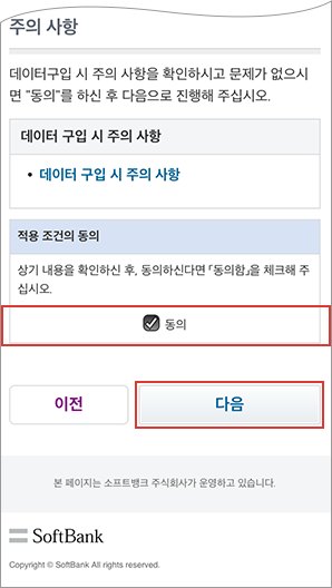 「데이터 구입 시 주의 사항」의 내용을 확인하신 후 「동의」에 체크를 하시고 「다음」을 눌러 주십시오.