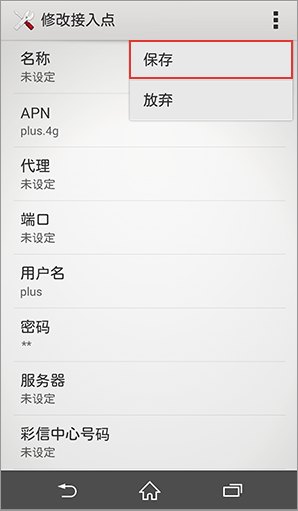 菜单上点击“保存”,选择APN一览中设置的APN。