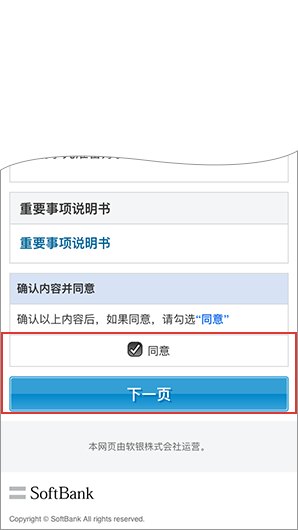 请确认“使用注意事项”和“重要事项说明书”的内容后,打钩“同意”,点击“下一页”。