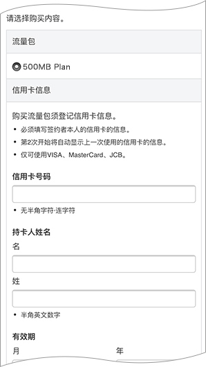 | 500MB / 31天套餐有效期为包括购买日在内31天。 | 1,650日元 |