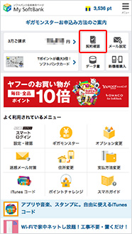 My SoftBankにログインし、「契約確認」を押します。