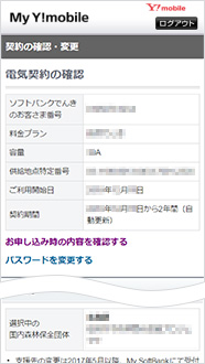 My Y!mobileにログインし、「契約確認変更」を押します。