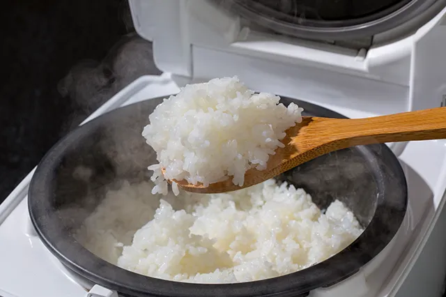 例えば、マイコン炊飯器は火力が劣る分、IH式や圧力IH式よりもご飯が硬くなりがちです。IH炊飯器はお米全体に熱が行き渡りやすいため、ふっくらと炊き上がる特長があります。