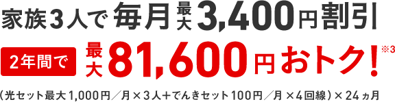 • 条件の詳細について、「おうち割 でんきセット(M)」はこちら