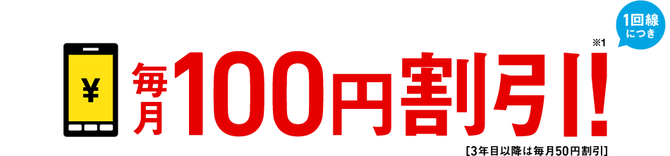 2. ※23年目以降は毎月55円割引。最大10回線まで対象。