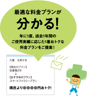 - 九州電力の従量電灯C、スマートファミリープラン、スマートファミリープラン[ガスセット]、スマートビジネスプラン、スマートビジネスプラン[ガスセット]にご加入のお客さまが対象です。
