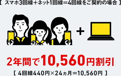 - ※23年目以降は毎月55円割引。最大10回線まで対象。