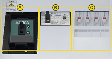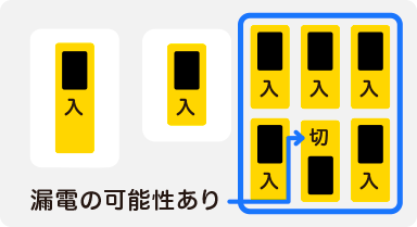 配線用遮断器を「入」にしたときに漏電遮断器が切れた場合、その回線に漏電の可能性があります。