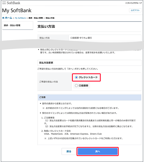 お支払いをまとめているサービスのボタンから会員ページにログインしてください。