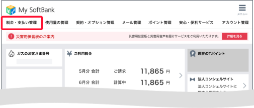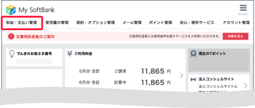 お支払いをまとめているサービスのボタンから会員ページにログインしてください。