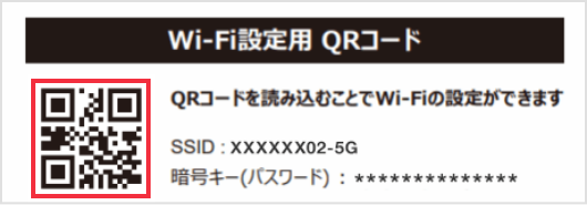 配線・設定が終わったら、機器に同梱のWi-Fi設定用QRコードラベルをご利用のスマートフォンのカメラ機能で読み取り、Wi-Fi設定を行ってください。