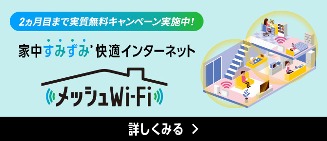 メッシュWi-Fiルーターの電波が届く範囲および実効速度は、周囲の電波状況や住宅の構造など利用環境により大きく異なります。