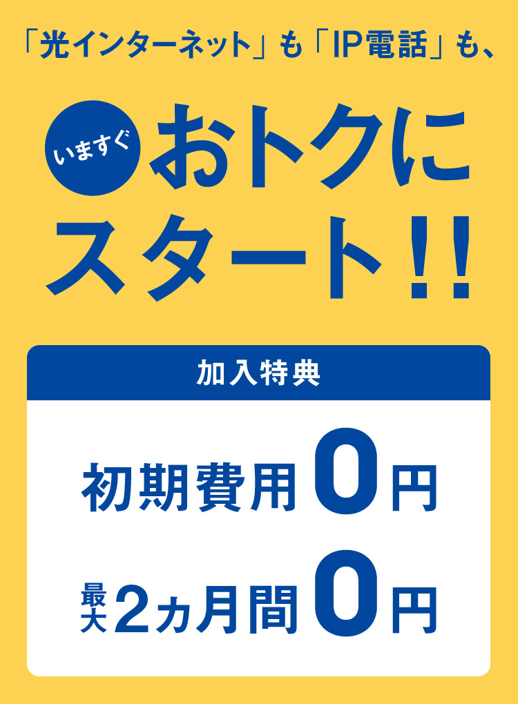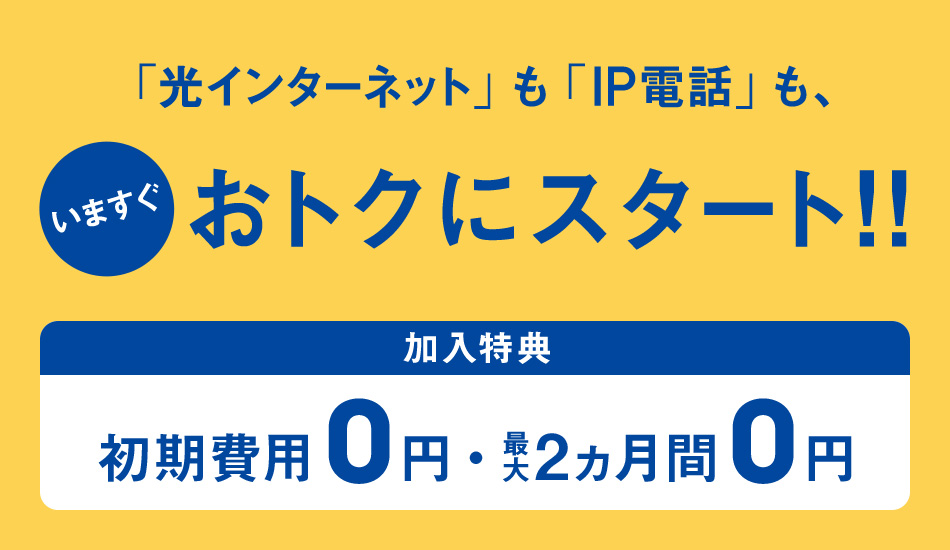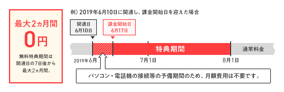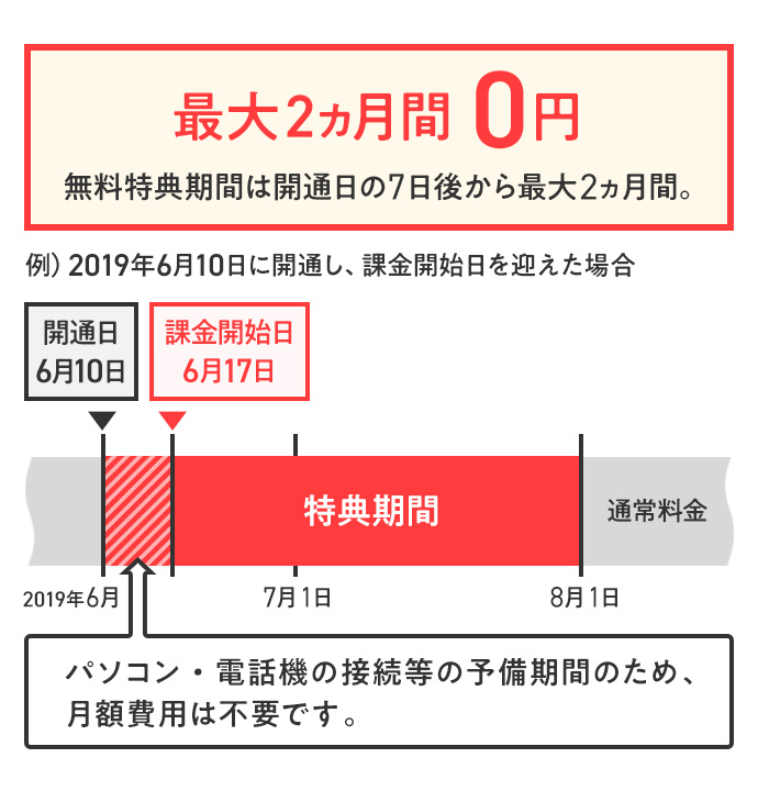 | プロバイダー料 月額利用料金 最大2ヵ月間無料 |