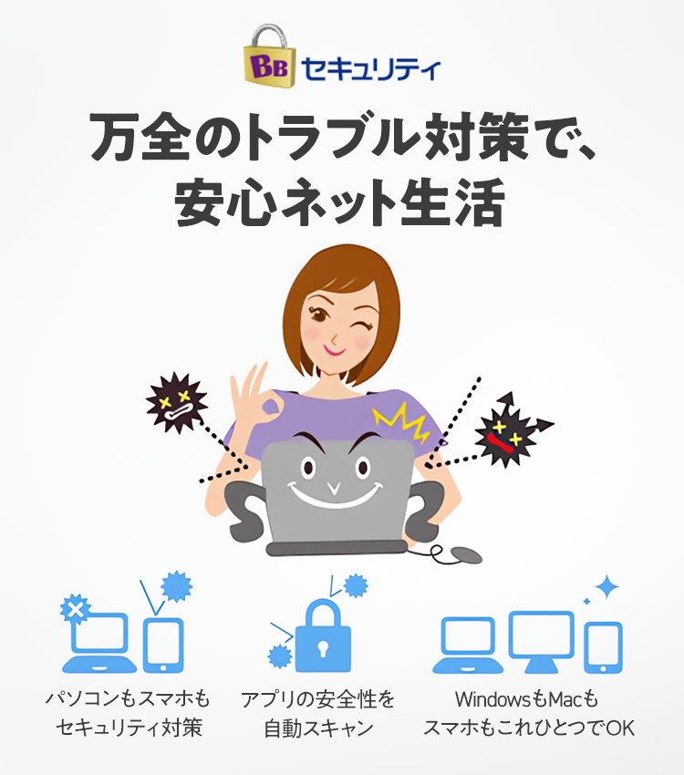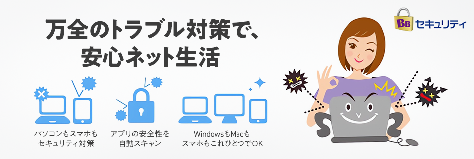 BBセキュリティはお客さまのパソコン、Android™ 搭載機種の動作環境によってはご利用いただけない場合があります。