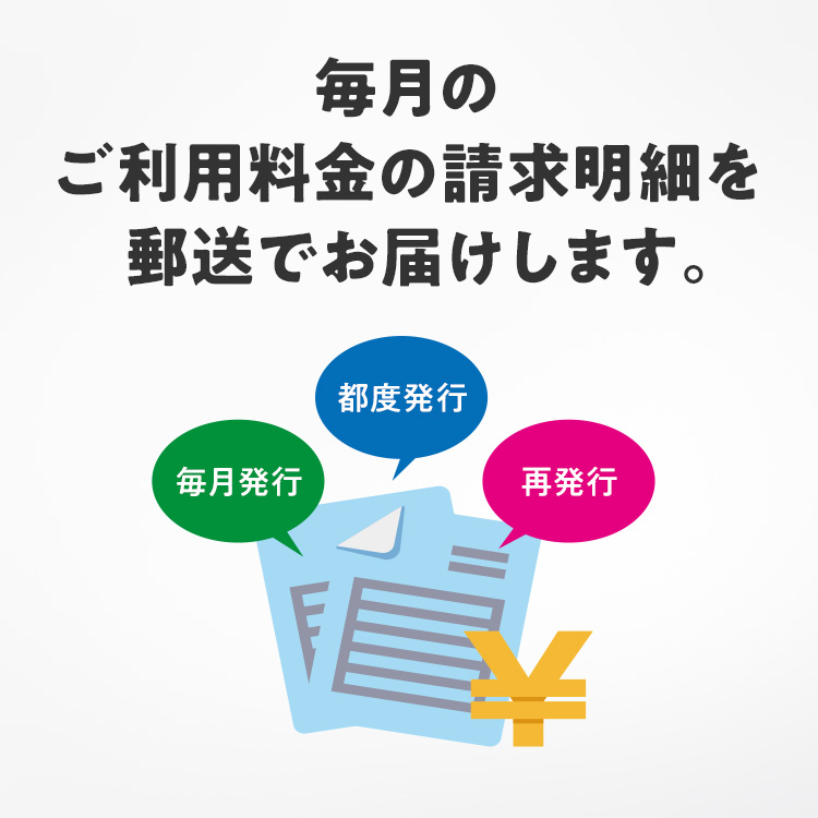 毎月のご利用料金請求明細(基本使用料、通話料、オプションサービスなど)を郵送するサービスです。