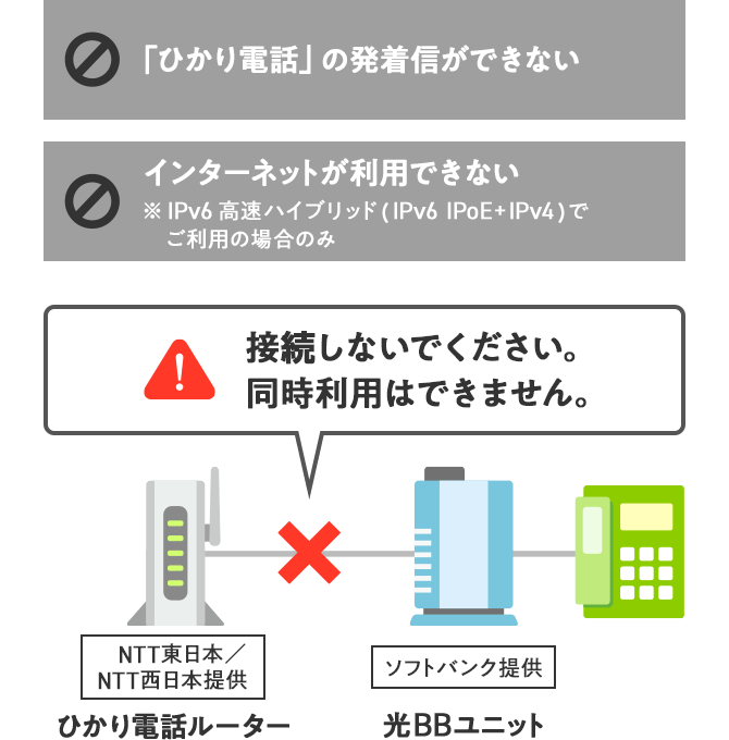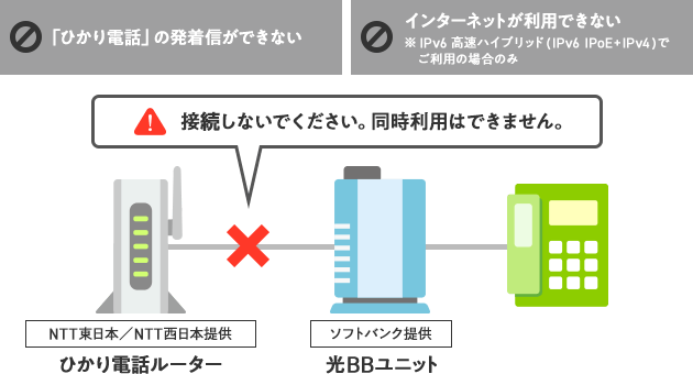 NTT東日本/NTT西日本のひかり電話ルーターと「光BBユニット・ひかり電話機能」は併用できません。