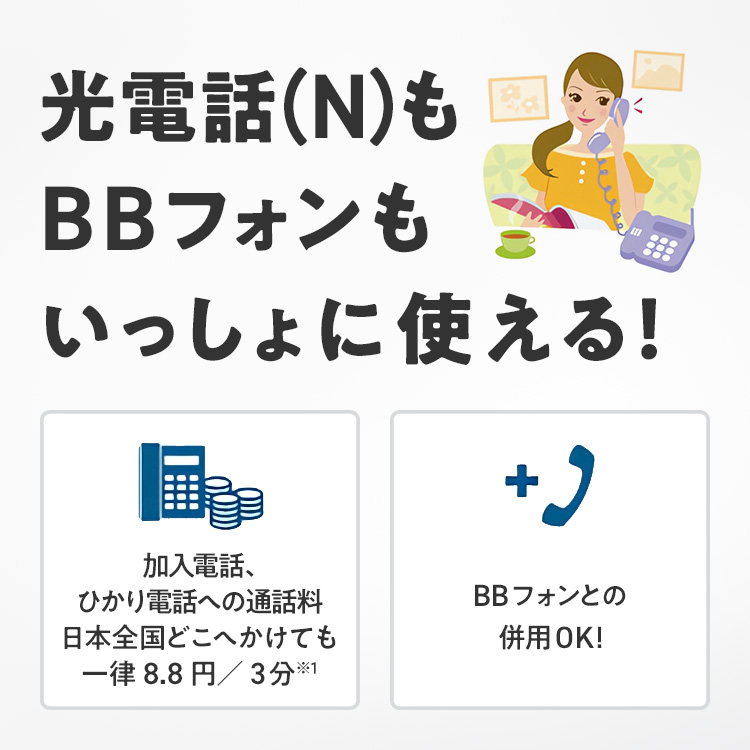 光電話機能とは、ホームゲートウェイ(N)を利用せずBBフォンと光電話(N)などを同時にご利用いただけるサービスです。