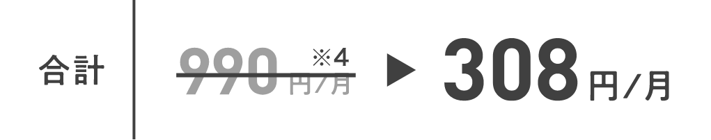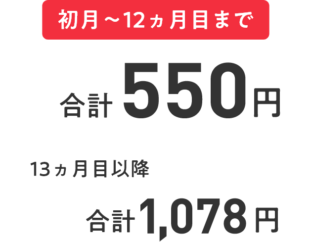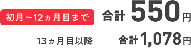 | 合計/月 | 12ヵ月目まで | 550円 | 永年 550円 | 永年 858円 |