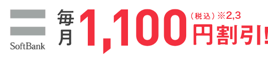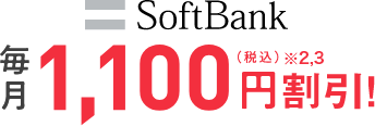 • 当社指定の窓口にてSoftBank新規お申し込み、サービス変更、プラン変更または移転のお手続きを行う場合は、契約事務手数料を1,100円割引します(契約事務手数料割引キャンペーン適用時)。