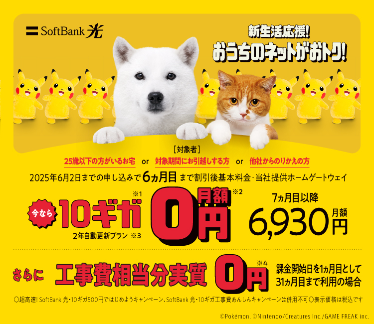 • 「SoftBank 光・10ギガ もっとめちゃトク割」については、SoftBank光からSoftBank光・10ギガへの変更は対象外です。