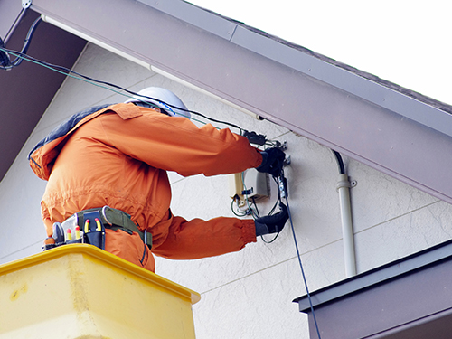 - 電柱から戸建住宅に光ファイバーケーブルを引き込む