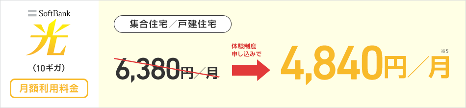| 月額基本料金 | 6,380円 | 4,840円 | 6,380円 | 4,840円 | |