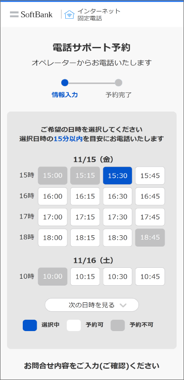 お電話をご希望する日時を選択し、必要事項を入力して予約