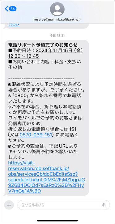 予約が完了すると以下のようなメールが届きますので、ソフトバンクからのお電話をお待ちください。