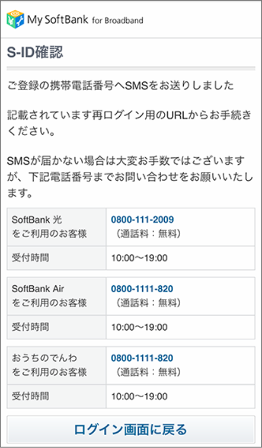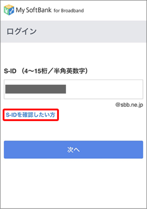 My SoftBankログイン画面より「S-IDを確認したい方」をタップ