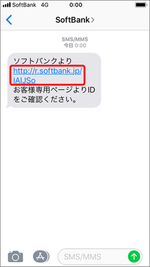 ソフトバンクより届いたSMS本文に記載されているURLをタップ