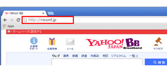 まずは[http://rtconf.jp]にアクセスして[セットアップメニュー]画面を表示してください。その後、必要な項目の設定を行います。セットアップメニューにアクセスできない場合