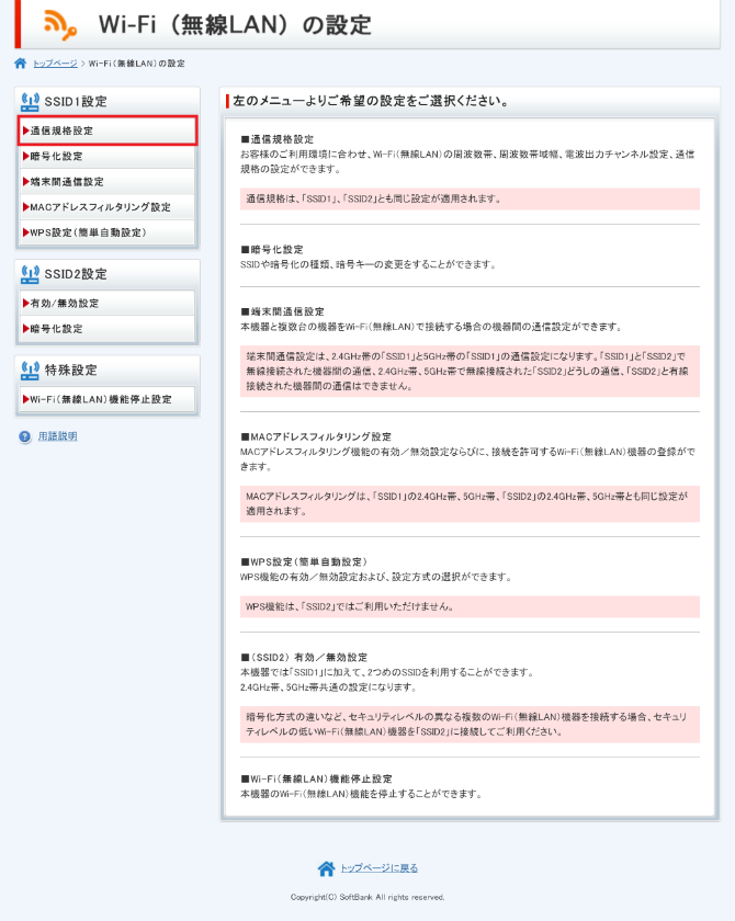 スマートフォン、パソコンからSoftbank Air(Wi-Fi)が表示されない場合は、以下の手順で「通信規格の変更」をお試しください。