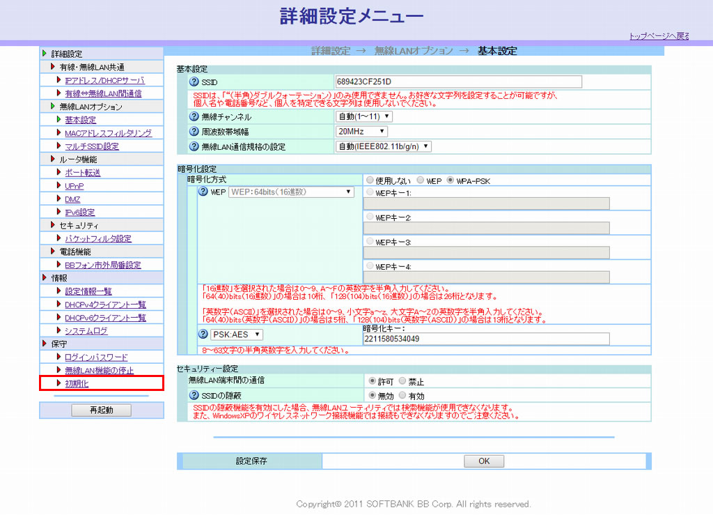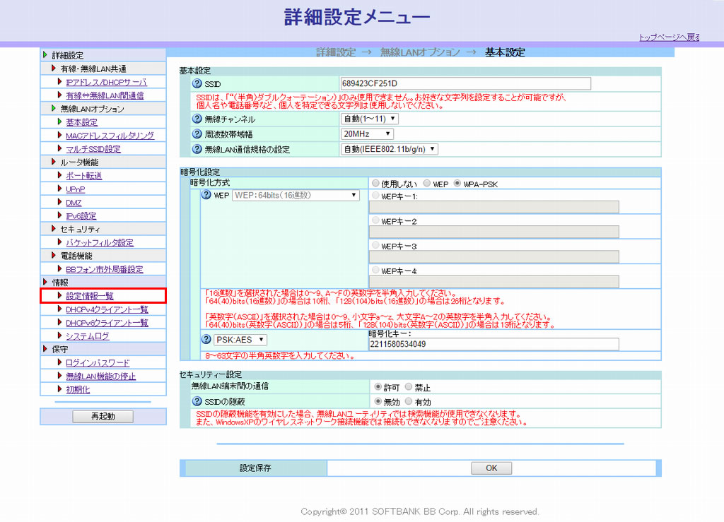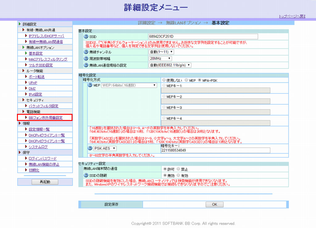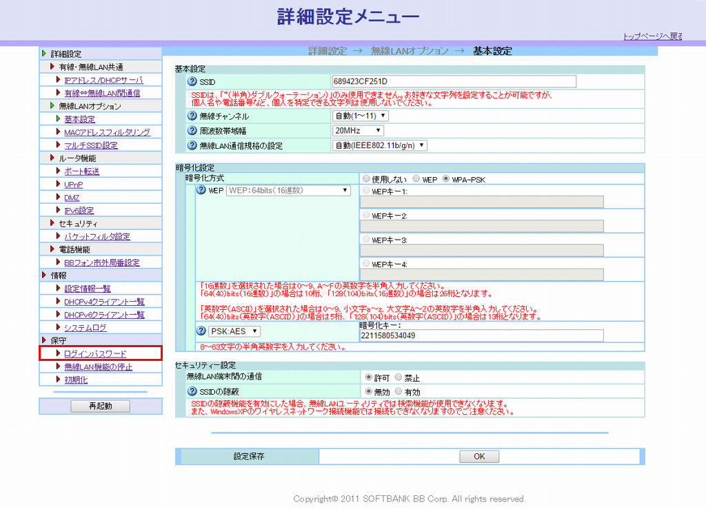 - ここで行う設定は、SSID1/SSID2の両方に適用されます。