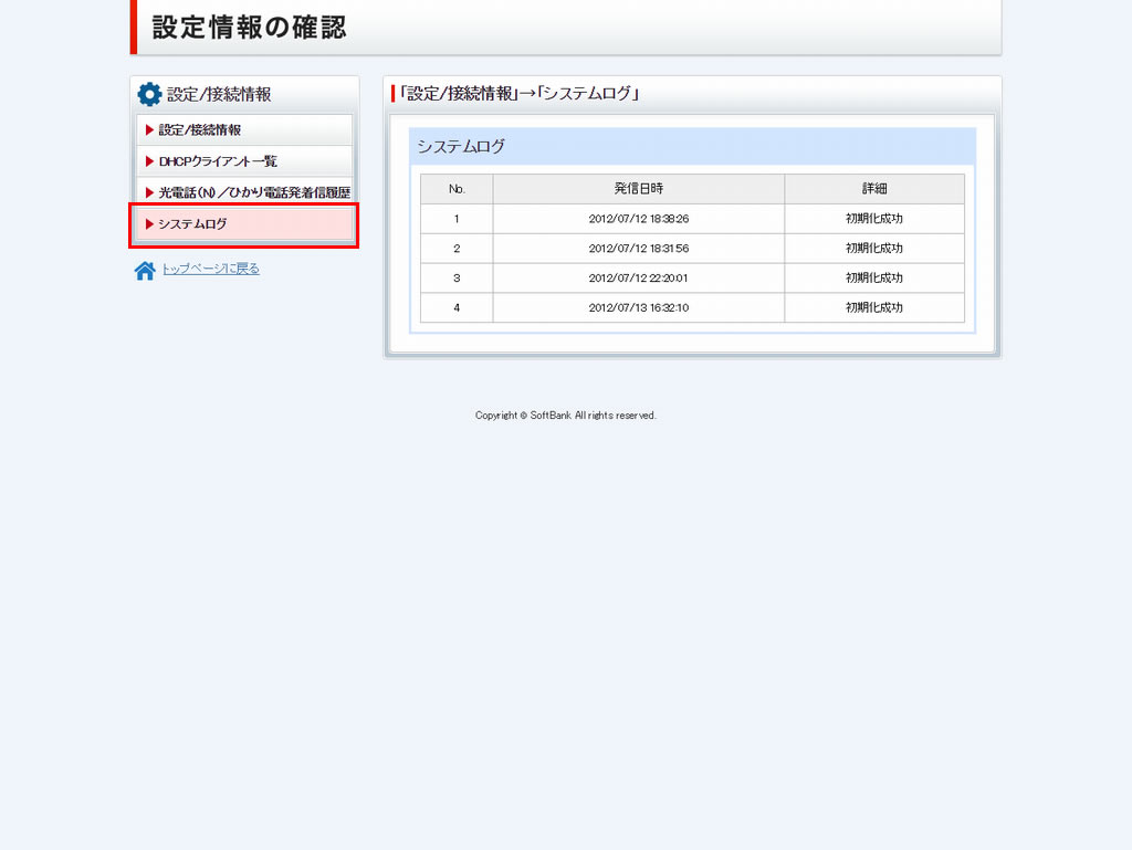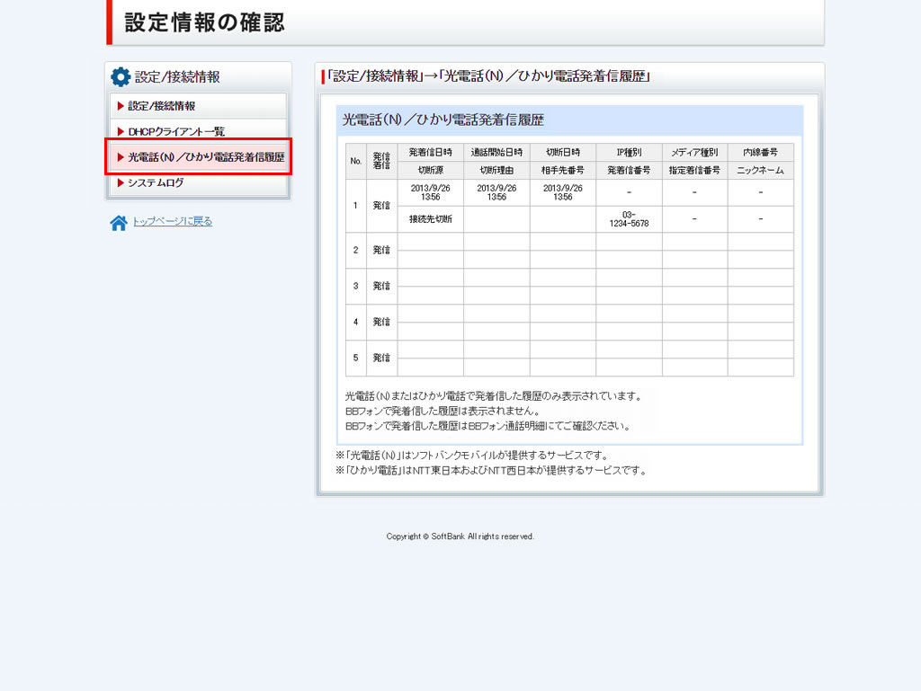 光BBユニットで使用したひかり電話発着信履歴の確認ができます。